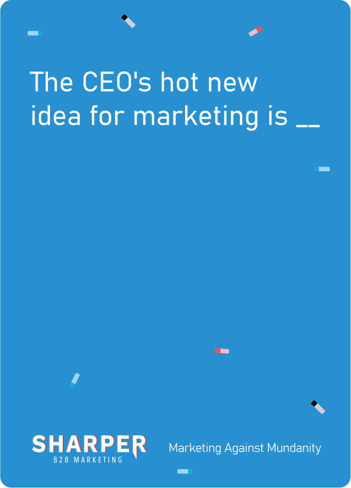 Make your fellow B2B marketers laugh (or cry) by playing the most hilariously accurate answer card to complete the prompt card.